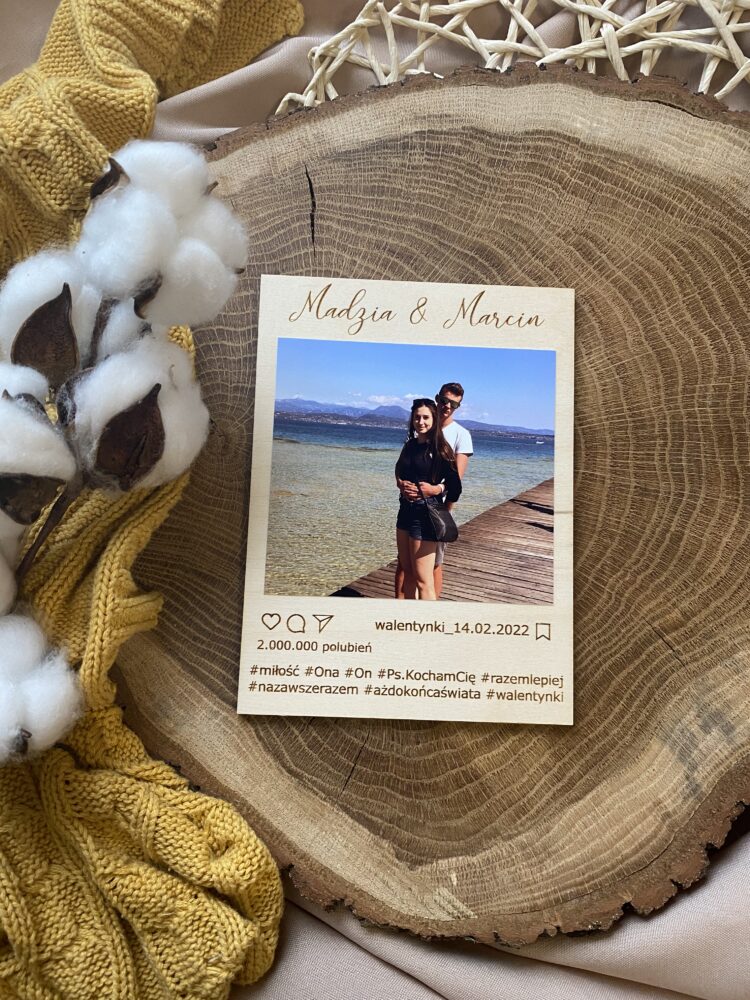 Mini ramka ze zdjęciem jako prezent dla ukochanej osoby. Forma ramki przypominająca ramkę Instagrama. Dowolna treść pod zdjęciem. Idealny prezent na walentynki, rocznice. Podaruj ukochanej osobie cząstkę wspólnych wspomnień.