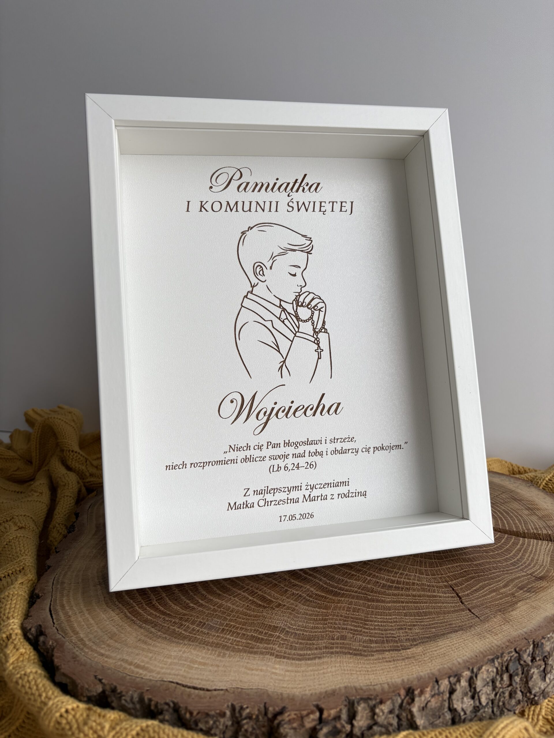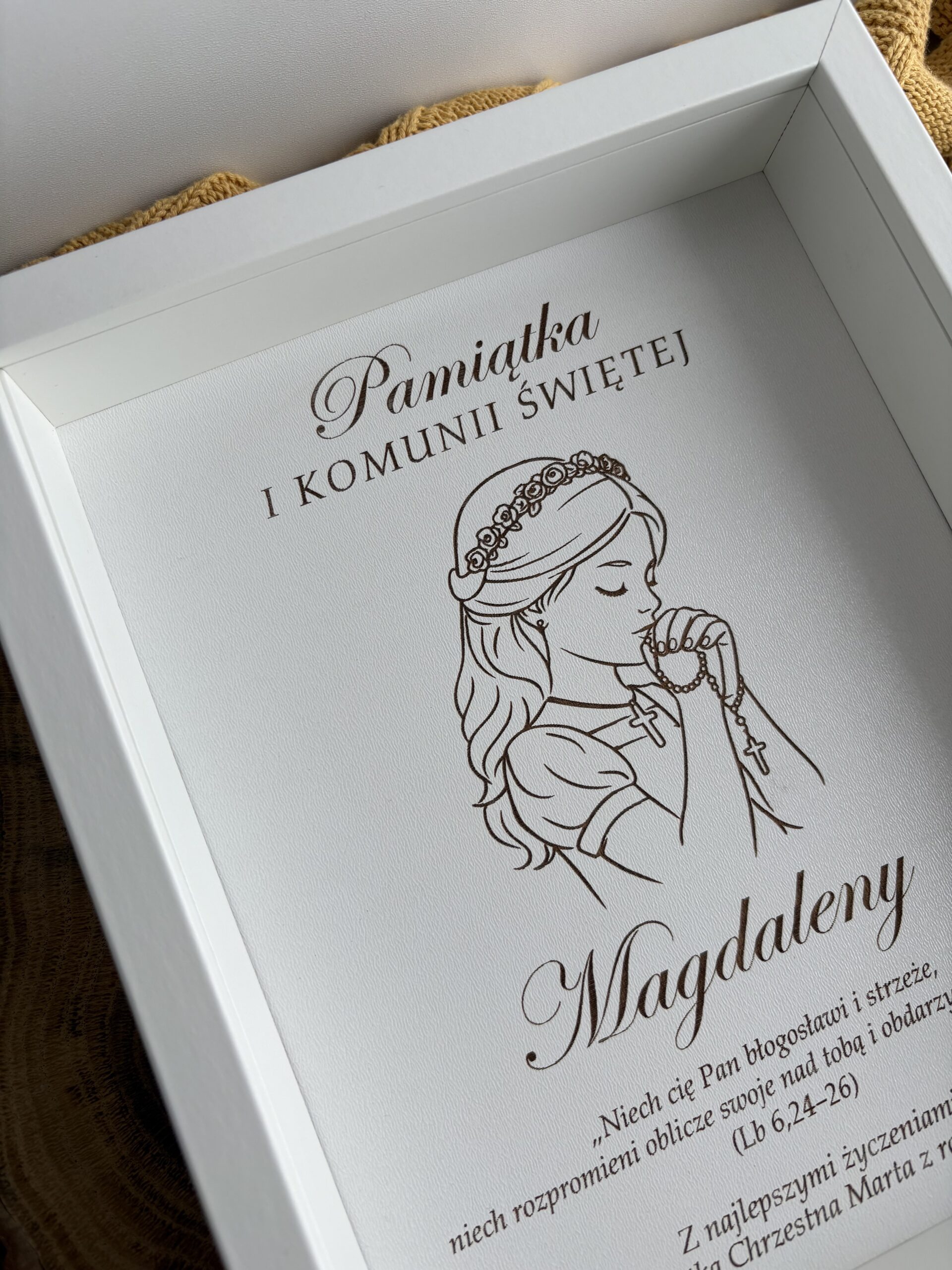 Pamiątka Pierwszej Komunii Świętej Ramka 3D z życzeniami Dziewczynka Chłopiec