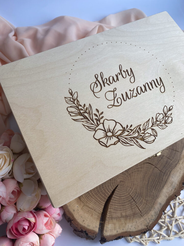 Grawer wykonany w technice laserowej. Możliwość umieszczenia na wewnętrznej stronie wieczka dedykacji.