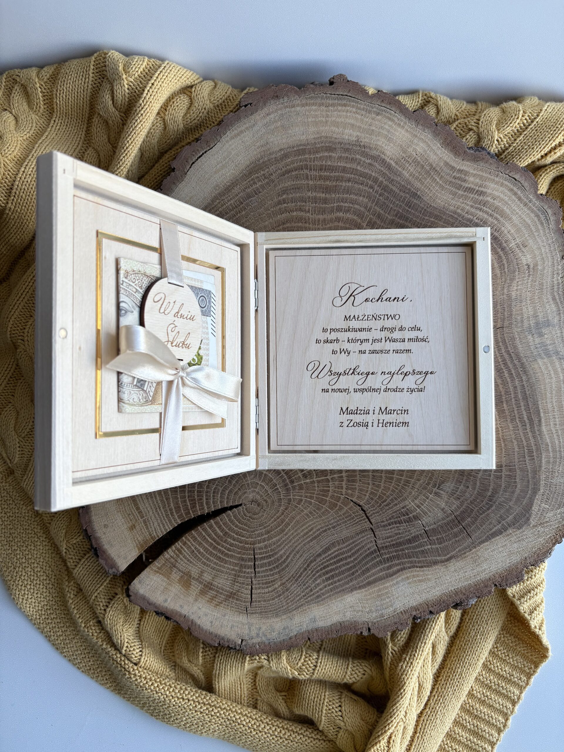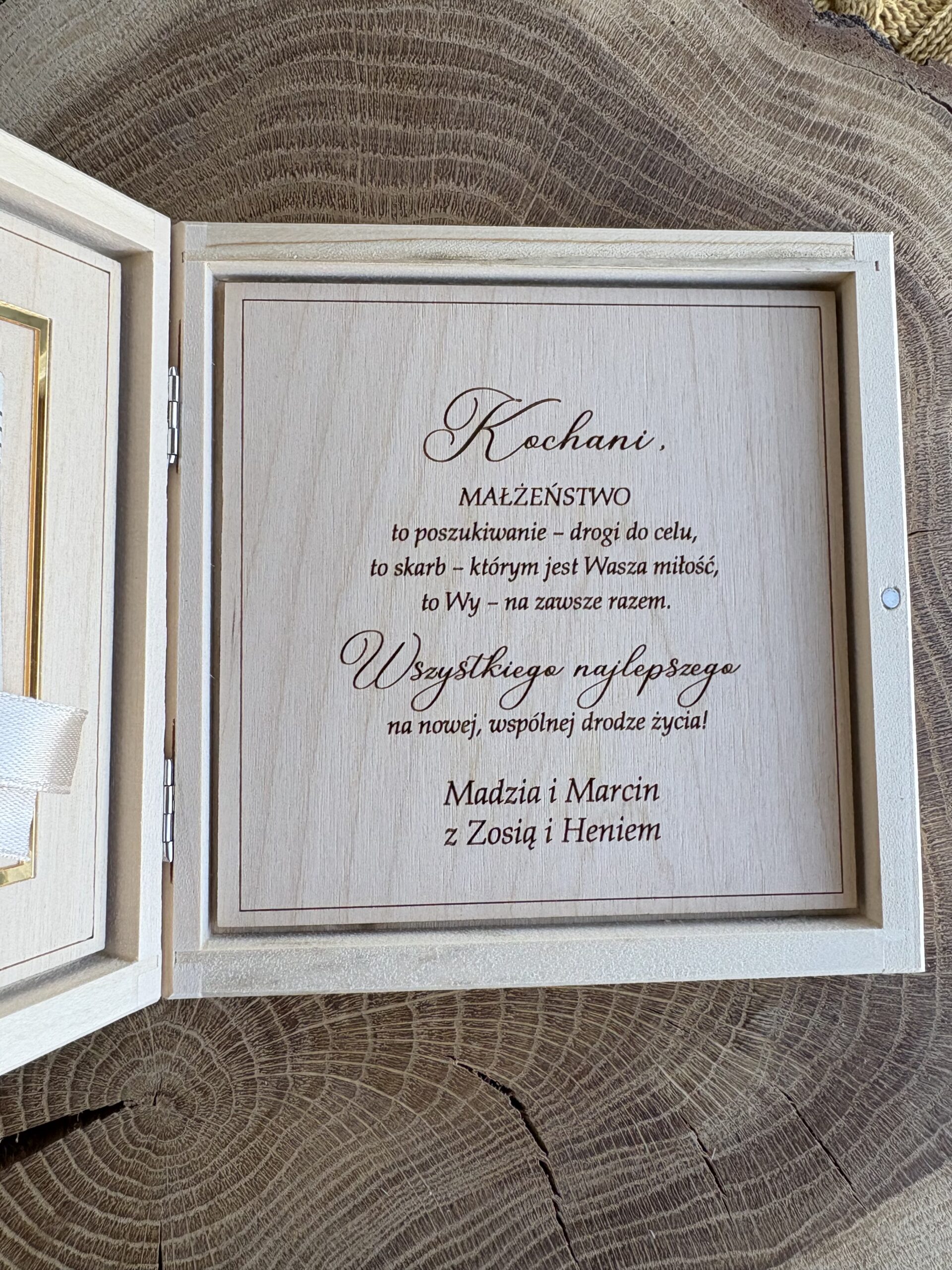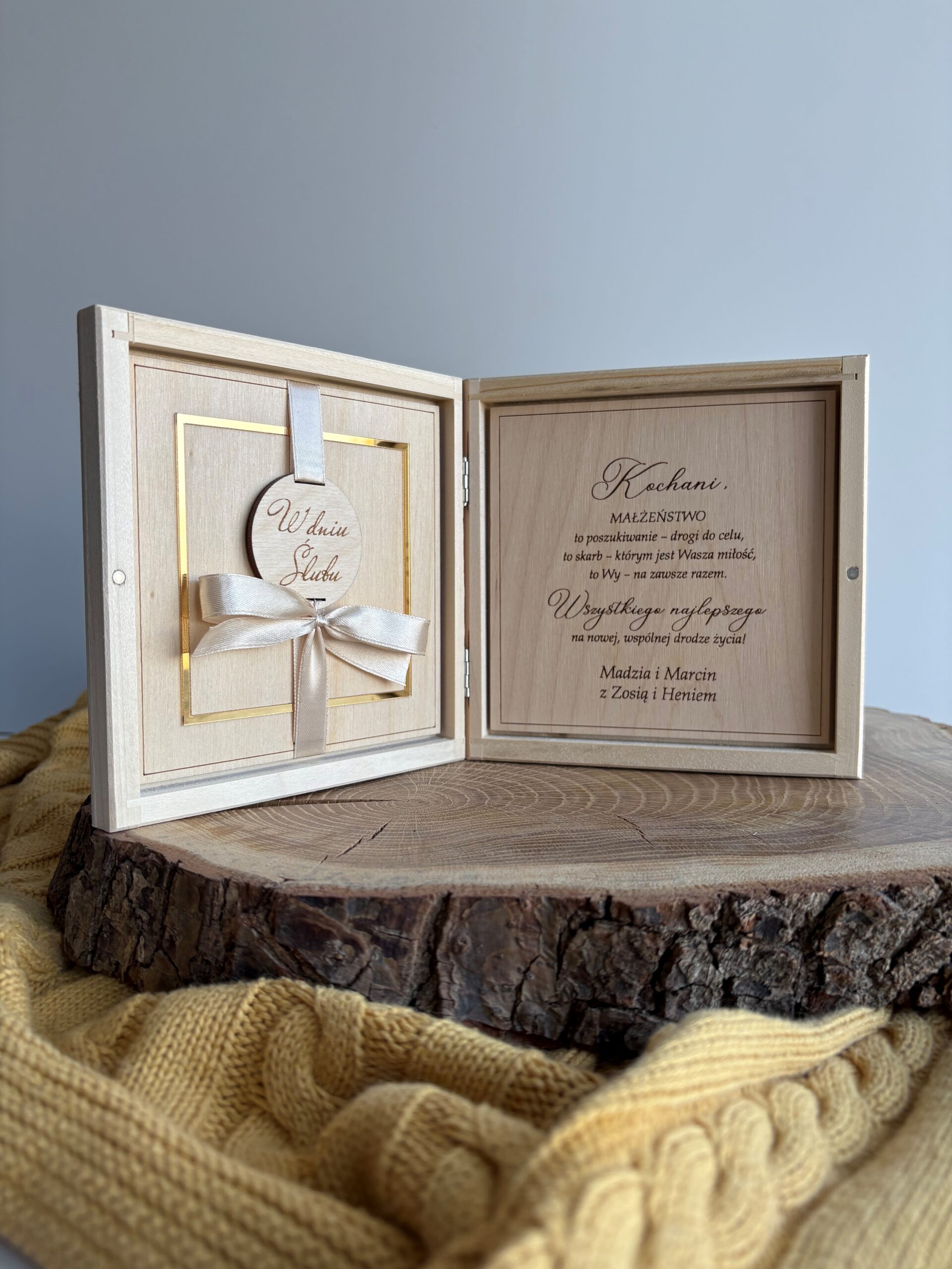 Pudełko z życzeniami na Ślub i Wesele Imiona i złoty &